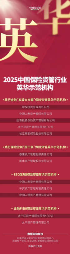 保险资管机构肩负着服务实体经济、保障民生福祉的双重使命。在过去一年的发展中,一批优秀的保险资管机构,在科技金融、绿色金融、普惠金融、养老金融、数字金融领域表现卓越,在新“国十条”指引下,不断提升长期资金管理能力。这些机构以专业为帆,以创新为桨,既实现了自身业务的高质量发展,更彰显了金融服务实体的时代担当。它们的探索与实践,引领保险资管行业朝着更稳健、更普惠、更可持续的方向前行。
