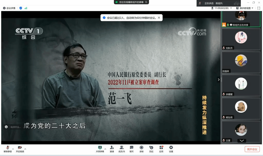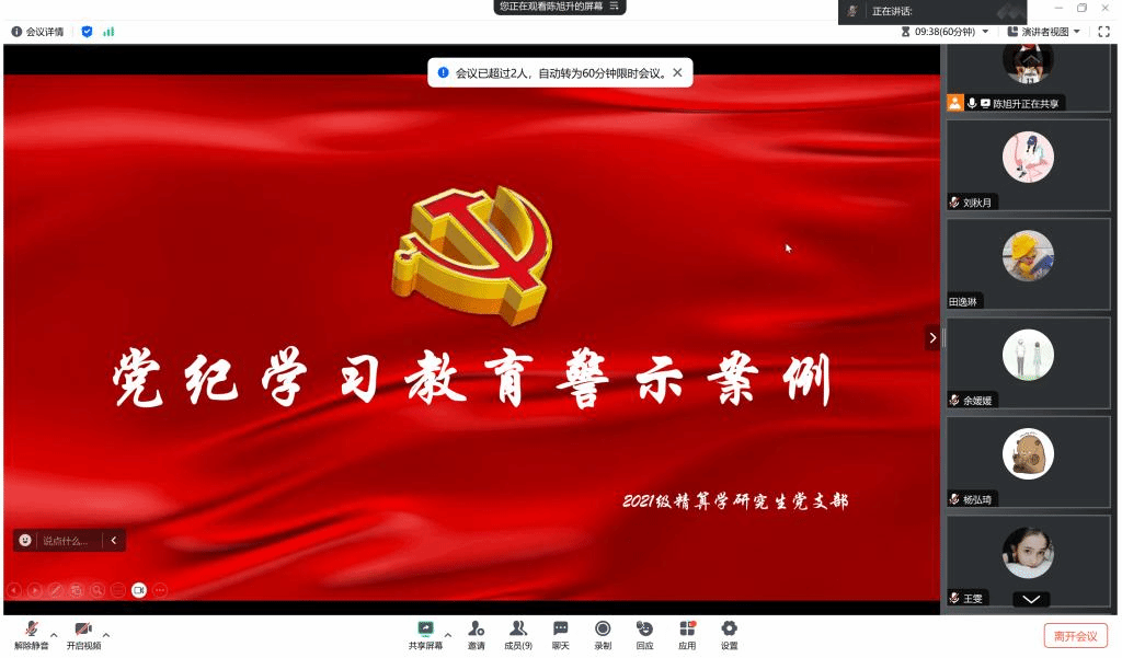 首先陈旭升同志向参会人员强调了党纪学习教育的重要性,目前学院每日一课微党课学习内容均围绕党纪学习教育展开,各党员同志应紧跟学院党纪学习教育的进程,认真学习每日一课微党课内容。作为毕业生党支部,我们即将从学生迈向职场,更要加强党员纪律教育的学习,强化政治意识,今天让我们通过观看警示教育案例来从中获得启发。