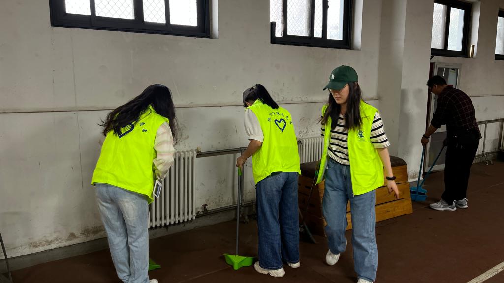 支部成员分工配合、积极投入,在场馆内擦拭乒乓球桌及其他设施、清扫地面、捡拾垃圾。经过半小时的辛勤劳动,场馆变得干净整洁,焕然一新。