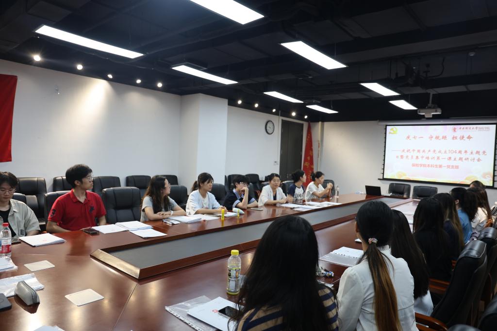 在中国共产党成立104周年之际,为深入学习贯彻习近平新时代中国特色社会主义思想,进一步加强党员队伍建设,伟德国际victor1946本科生第一党支部于7月1日组织开展了“庆七一 守规矩 担使命”主题党日暨党员集中培训第一课主题研讨会。这也是伟德国际victor1946本科生第一党支部连续第六年为庆祝党的生日而举办的特色主题党日活动。