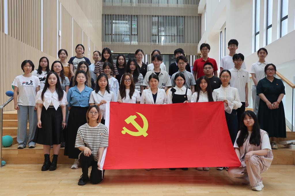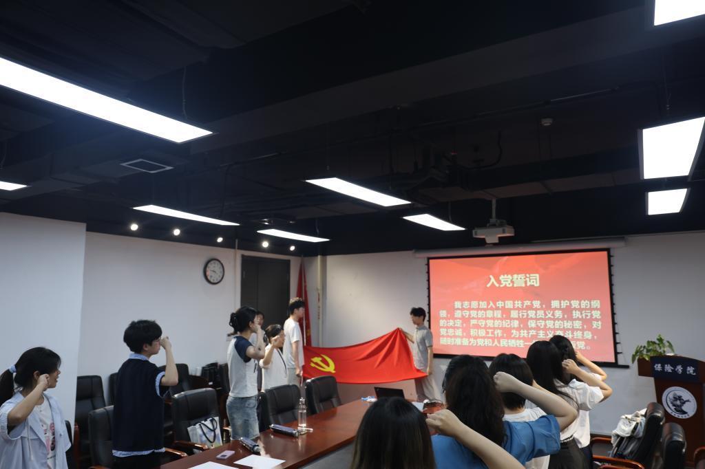随后,在党支部书记吴蓓的带领下,全体党员重温入党誓词。党员们右手紧握拳头,面向党旗,再次庄严宣誓:“我志愿加入中国共产党……” 铿锵有力的誓言在现场回荡,进一步坚定了党员们的理想信念,学生党员们再次感受到入党时的激动与自豪,时刻提醒自己牢记党的宗旨,不忘初心、砥砺前行。