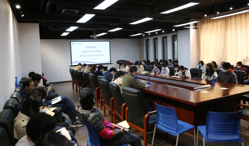 为深入学习贯彻党的二十大精神,贯彻落实教育部、北京市和学校党委关于全面从严治党工作会议要求,进一步加强党员的政治意识、规矩意识,提升思想政治和师德师风水平,守牢底线、树正师风,3月22日下午,伟德国际victor1946在学院楼13号楼215会议室,召开了全面从严治党暨师德师风警示教育会。学院党委书记王颖作警示教育情况通报并提出工作要求,学院全体教工党员和学生党支部书记、委员参加会议。